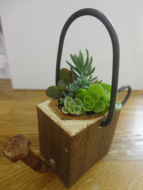 先日はお客様手作りの木工細工のジョウロに、多肉植物を寄せ植えした、こんなに可愛い物を頂きました!!