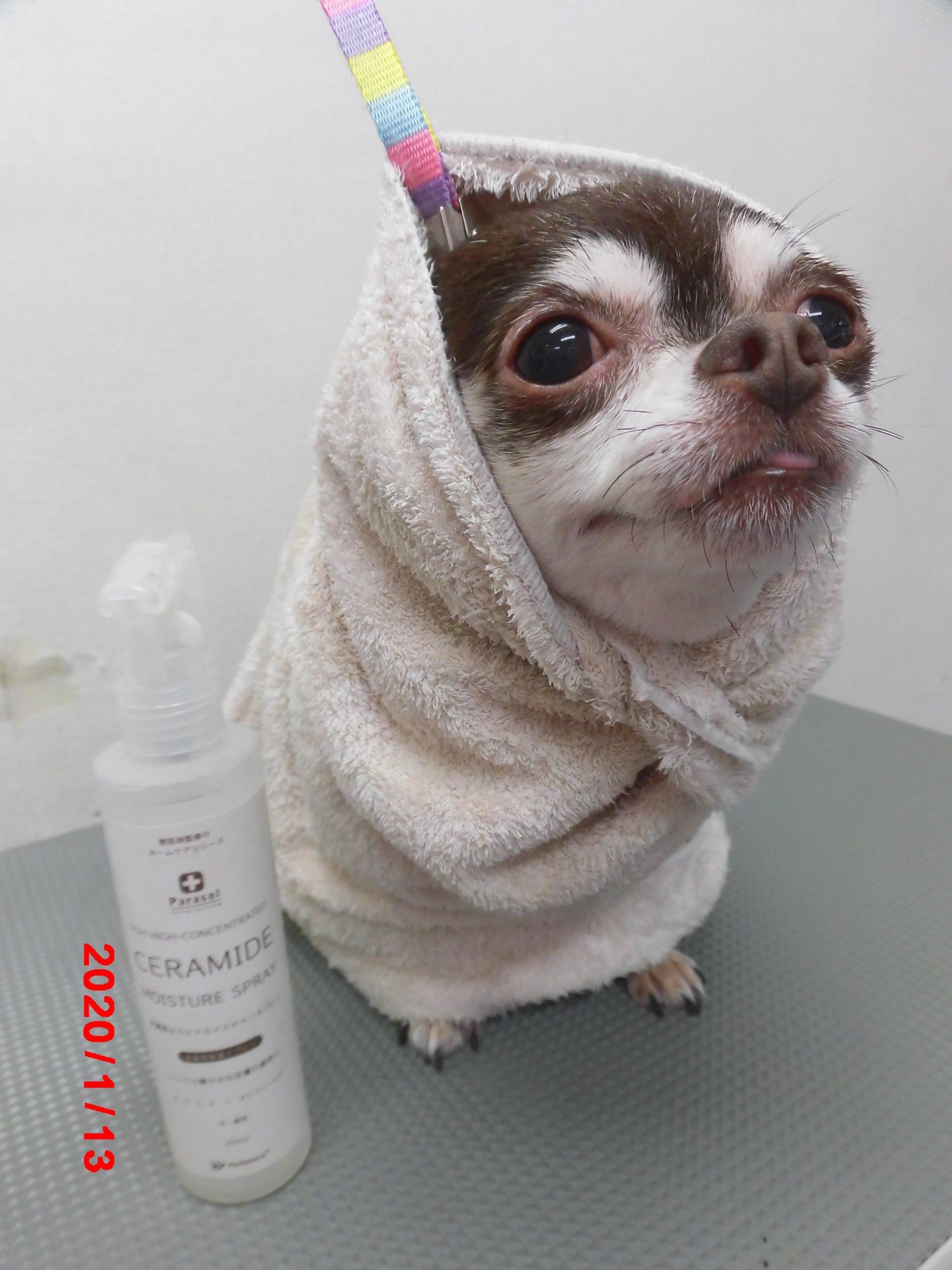 保湿剤をスプレーしてタオルでクルクル巻です!